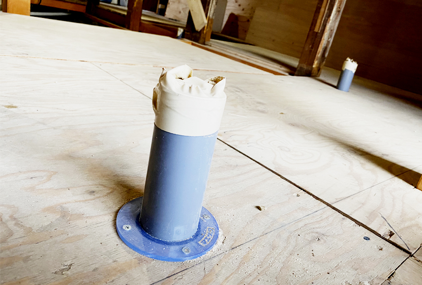 浴室やトイレ、キッチンなどが到着していないので、作業は完了しませんでしたが、「水道」屋さんの下準備は完了。