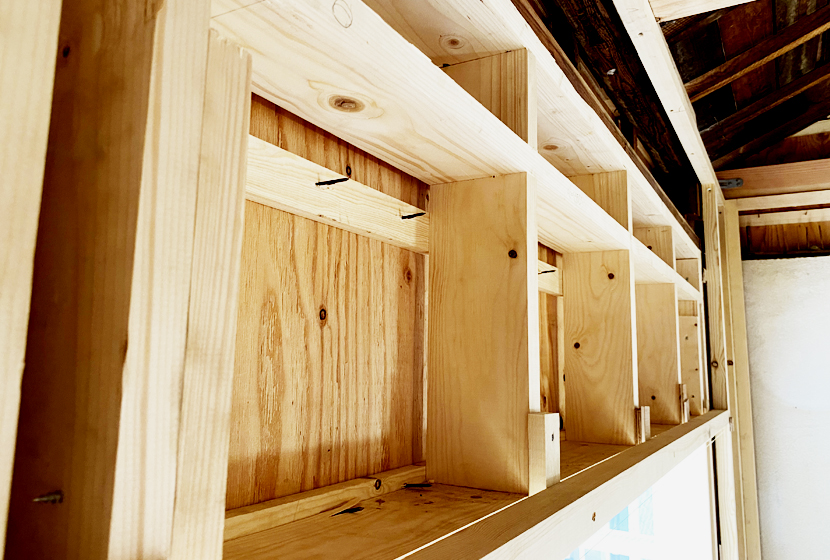 私は久しぶりの室内作業なのですが、室内での「造作」は室外の作業と比べて、より正確性を求められます。木材の長さや傾き、ネジの締め方まで1mm単位の精密さが求められます。