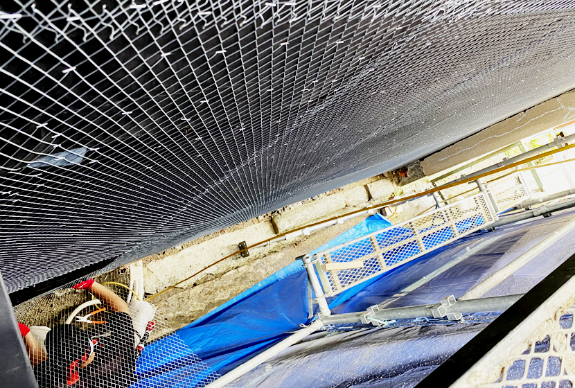 本日は「大工」チームに加えて「左官」チームが現場に合流。先日に完了しなかった壁面のラス貼り作業の続きを行います。