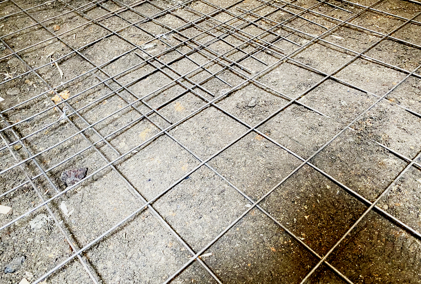 軽く地面(土)を整地したら、作業スタート。セメントがのりやすいように地面に金網を敷いていきます。
